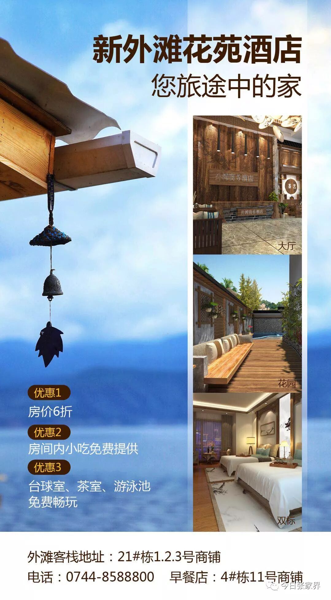 为了庆祝11月29日盛大开业,新外滩花苑酒店将于11月29日-12月29日提供3项特别礼遇:优惠一:房价6折;优惠二:房间内小吃免费提供;优惠三:台球室、茶室、游泳池免费畅玩。