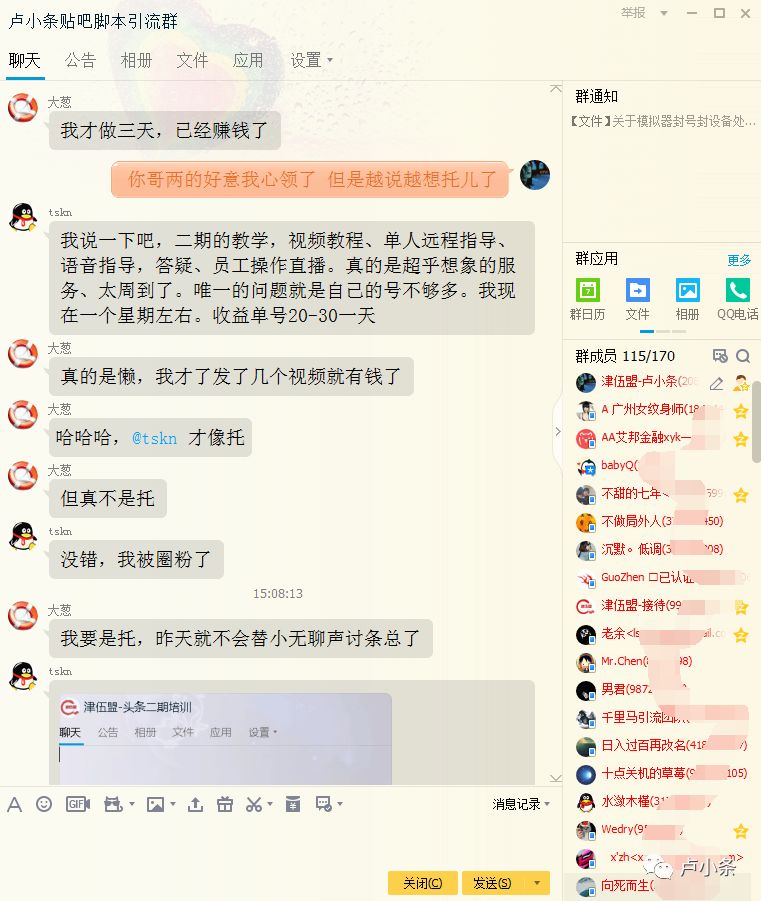 这几点,由我引流教学群的老弟给我当“托儿”说明了