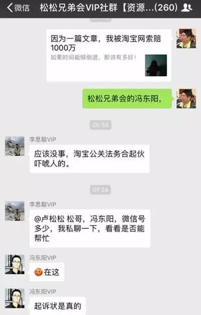 近日,自媒体人冯东阳在松松兄弟会群里发了一篇文章称:,因为自己的一篇文章涉及到侵害淘宝的名誉权,被要求赔偿1000万。,要求必须在3月份出庭,这下可让冯东阳兄恼火了。没想到这篇文章给他带来了大麻烦。
