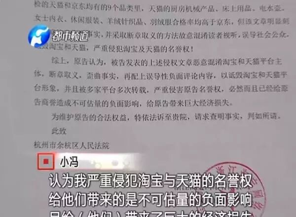 ,但冯东阳误认为天猫属于淘宝的,就把文章里的天猫写成了淘宝。淘宝就以这个为主要理由,认为冯东阳是故意混淆淘宝和天猫两家主体,因为抽检的平台里面并没有淘宝,,而是提到的天猫。