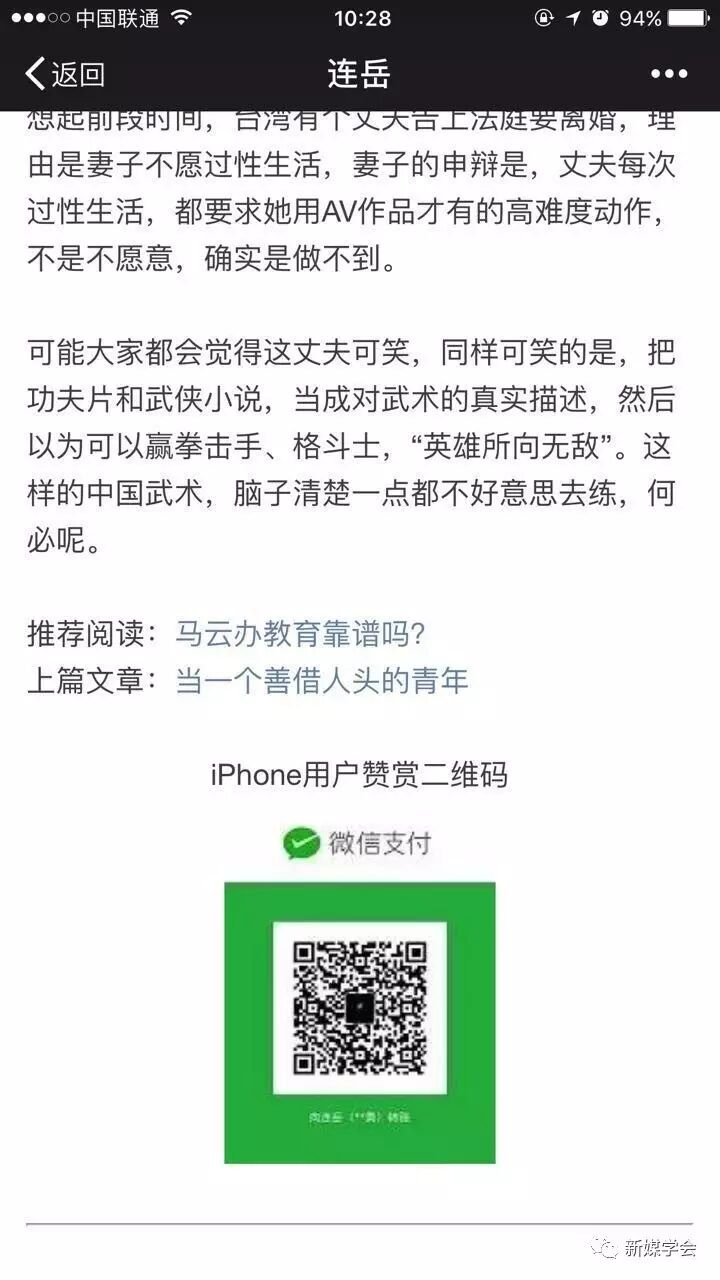 也称“打赏”,一种非强制性的用户付费模式,公众号可以设定打赏金额( 1 ~ 256 之间的任意整数),目前苹果版的微信公众号赞赏功能已经取消,只能文末加收款二维码收款。