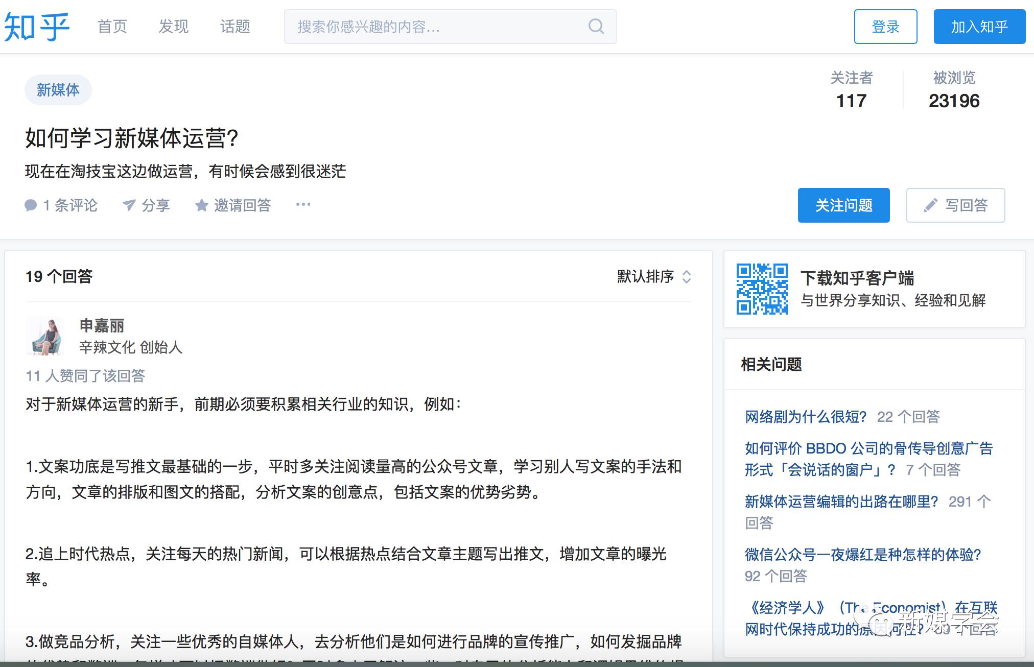 比如下面的一个问题:如何学习新媒体运营在知乎中的回答。