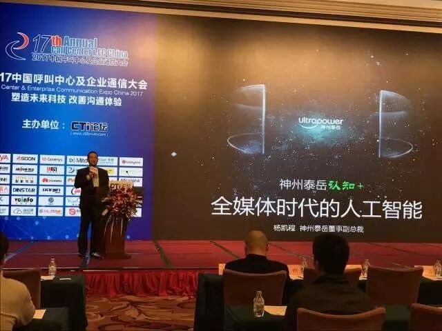 3月24日,以"塑造未来技术改善沟通体验"为主题的2017中国呼叫中心及企业通信大会(CTI)在北京辽宁大厦隆重召开,神州泰岳携旗下小富机器人4.0产品重磅亮相。在研讨会环节,神州泰岳董事副总裁杨凯程发表了《神州泰岳“认知+”全媒体时代的人工智能》的精彩演讲。