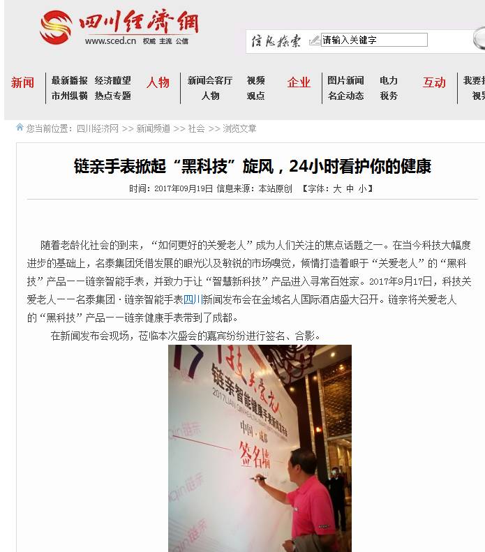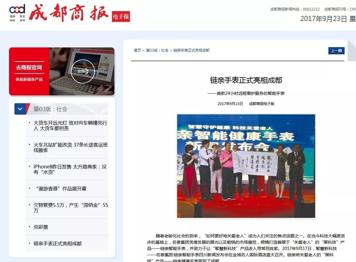 9月17日,由成都市营养与科技保健协会主办、名泰集团成都分公司承办的链亲健康手表新闻发布会在成都举行,社会各界领导、学术专家、学者、记者、嘉宾等500余人出席了本次发布会。