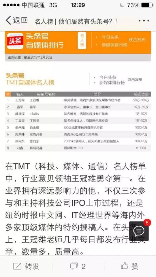 简介:TMT行业意见领袖,海内外多家顶级媒体专栏作者,位列头条号TMT自媒体名人榜第一名。