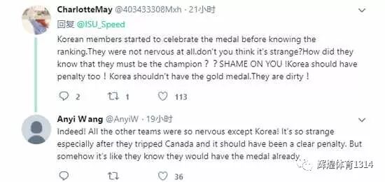 更有网友直接@ISU官方社交账号,要求给出一个明确的解释:“所有其他国家的选手都在焦急不安地等待结果,为什么韩国队直接就开始庆祝了?”“这难道不奇怪吗?他们怎么就知道自己是冠军?”“短道速滑的规则什么时候改了吗?”