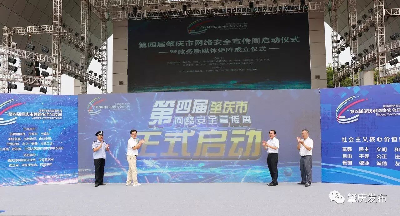 9月18日,由市委网信办、市委办、市编办、市经信局、市教育局、、市国安局、市文广新局、市总工会、市工商局、团市委、中国人民银行肇庆市中心支行共同主办的第四届肇庆市网络安全宣传周启动仪式在牌坊广场举行。