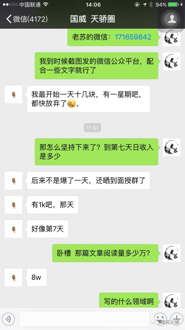 老苏问过国威,不愿意留自己的微信。也就希望不要来问老苏他微信多少能不能和你交流下了