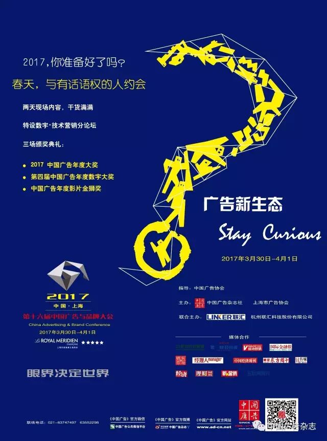 本届大会的主题是“广告新生态——stay curious(保持好奇)”,媒体人如何在沧海桑田的大环境之下,如何不忘初心保持一种好奇的心态来从事媒体行业?夏洪波认为唯有“创新”。
