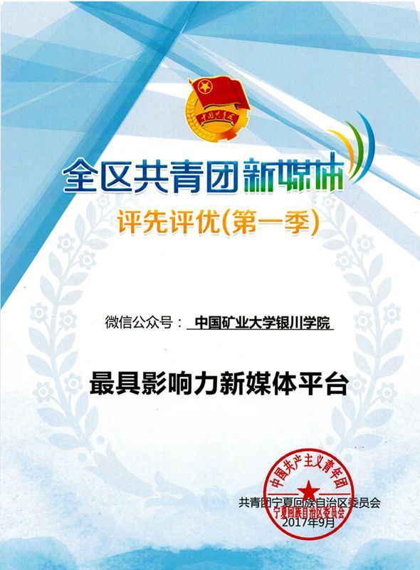 9月28日,自治区团委表彰奖励了新媒体评先评优(第一季)活动有关单位、个人和文化产品,中国矿业大学银川学院官方微信“kdycxy”在百余个微信公众号中脱颖而出,荣获“最具影响力新媒体平台奖”。