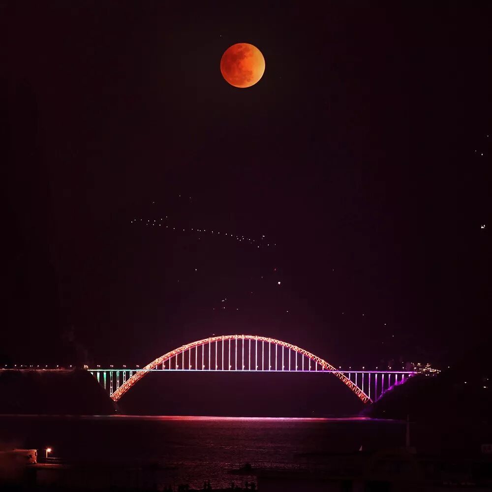 1月31日晚,农历丁酉鸡的年最后一个满月夜,天空中上演月全食大戏。我县众多市民欣赏到一轮“红月亮”高悬夜空的迷人景象。