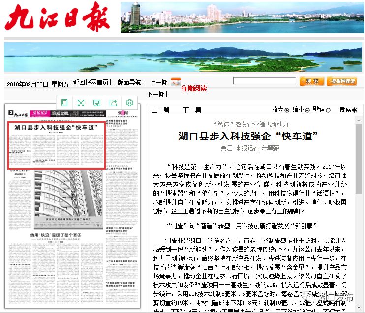 在新型工业化道路上,以技术改造传统产业的重要性日益彰显。目前,湖口县除了九钢公司外,江铜铅锌、蓝天玻璃等30余家企业也通过技改升级,产能和效益同步增长,实现了传统企业由“制造”向“智造”转型,在经济下行压力趋紧的大环境下扎稳根基。