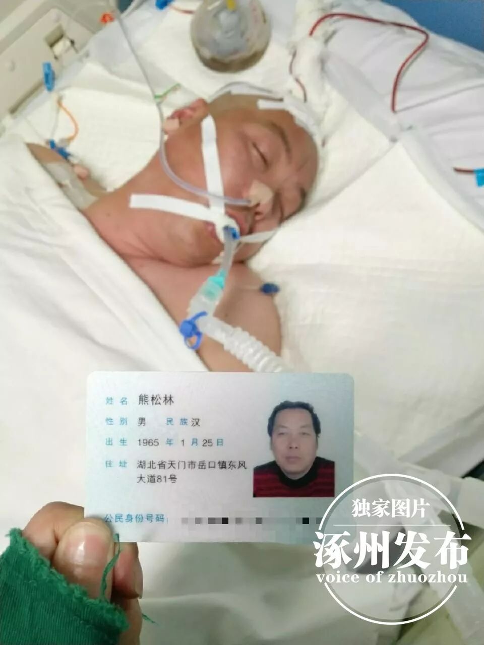 住在重症监护室的是她的父亲熊松林,今年53岁,湖北天门人,几年前和妻子带孩子来涿州打工。