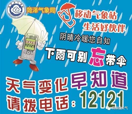 目前,: 12121自动答询平台、电视天气预报、菏泽微天气、气象电子显示屏、手机气象短信。