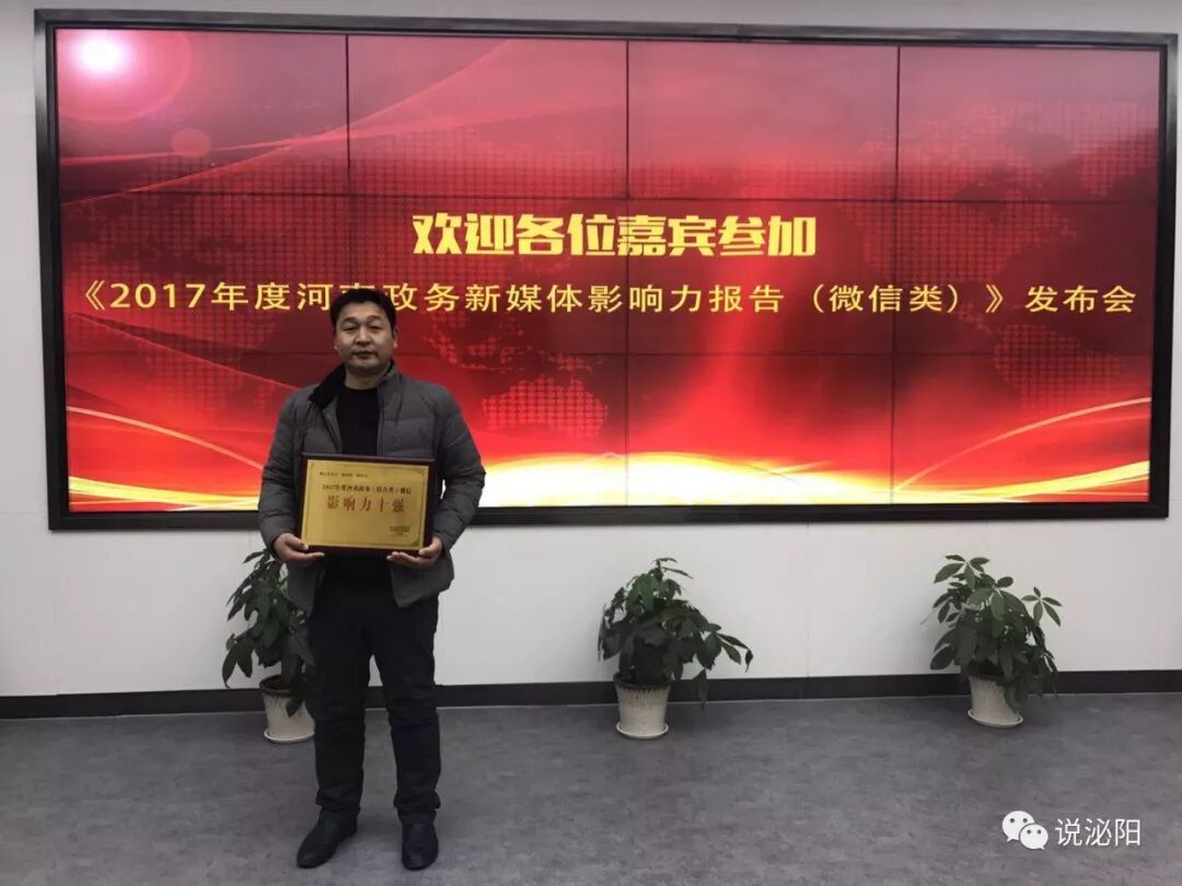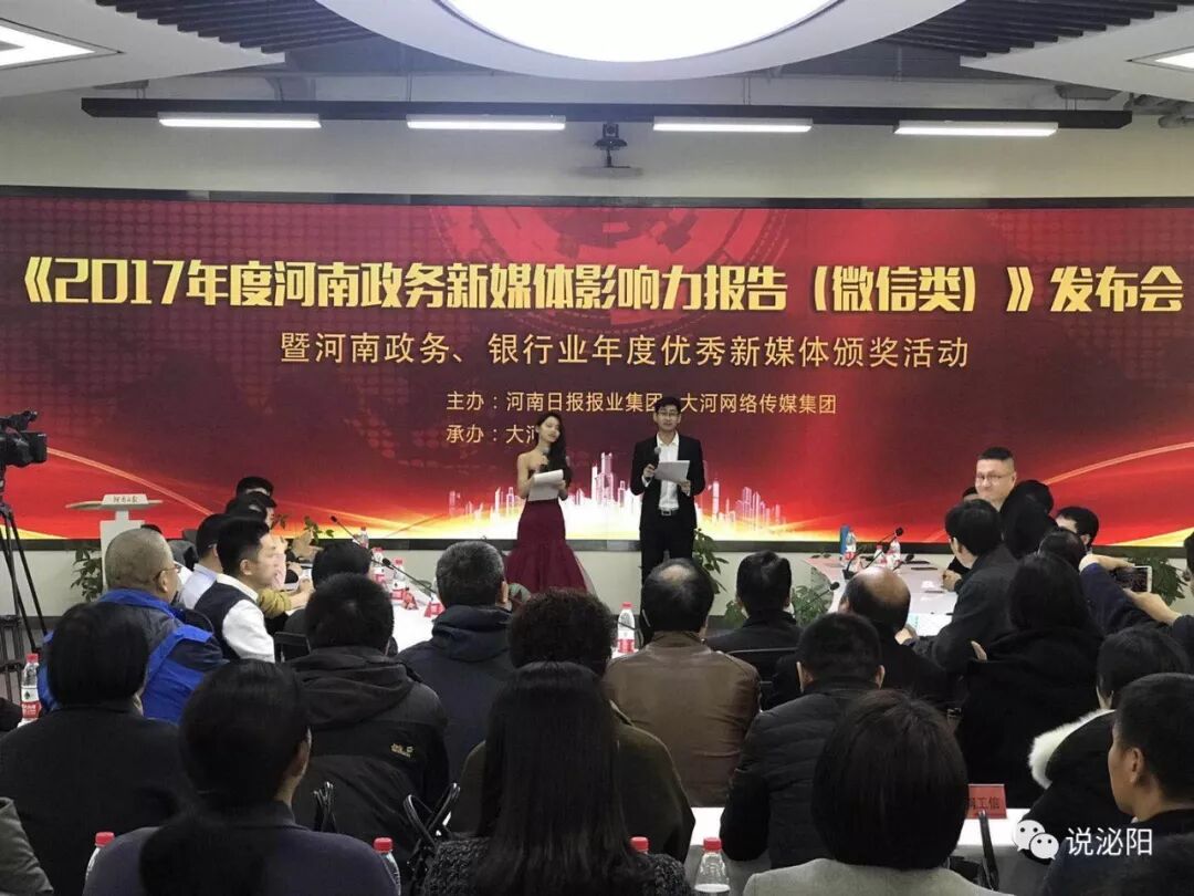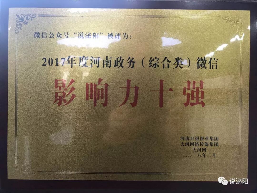 今天上午,从郑州传来喜讯,在由河南日报报业集团和大河网络传媒集团主办、大河网承办的2017年度河南政务新媒体影响力报告(微信)发布会上,泌阳县委宣传部主办的官方微信平台《说泌阳》微信公众号喜获2017年度河南政务类(综合类)微信影响力十强。