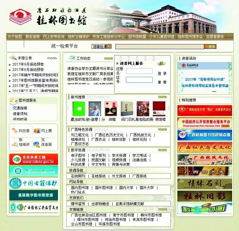 据了解,桂林图书馆计算机自动化系统始建于1991年,1998年建立网站发布文献信息,经过二十多年的发展,桂林图书馆网站通过多渠道、多手段提供馆藏书目、特色资源、电子资源以及公共信息查阅等服务,为桂林地方文化的发展提供了强有力的保障。