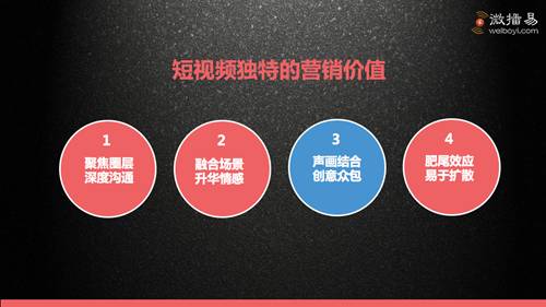 关于短视频的营销价值,不再多说案例,相比微博、微信来讲,一条微博的寿命大概5分钟,一条微信的寿命大概一天。