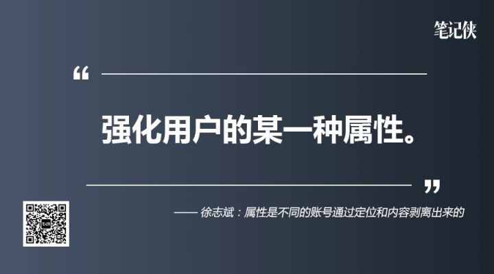 平台是这样,我们刚才讲的关系背后的诉求也是这样,不同的帐号通过你们的定位和内容已经将用户的某一种属性抽离出来,然后就一定要强化它。