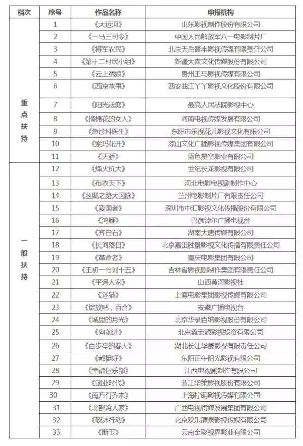 2、【2017年度电视剧精品发展扶持专项资金剧本扶持项目评审结果公示】