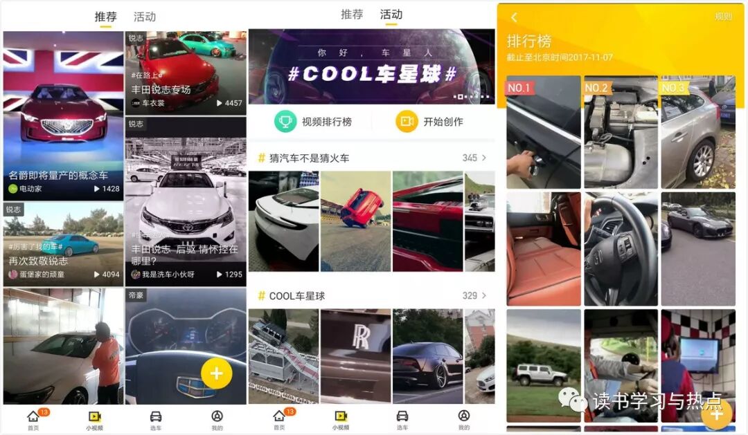 除却无缝移植,懂车帝在内容供给端发挥了头条做个性化推荐的优势,尤其是在短视频内容的制作上,你甚至可以把这里理解为一个汽车版的快手,用户上传的短视频不仅会供懂车帝自用,也会在整个头条的短视频架构里流转,就算懂车帝其他业务一事无成,这里也算给火山小视频增加了一个生产内容的入口。